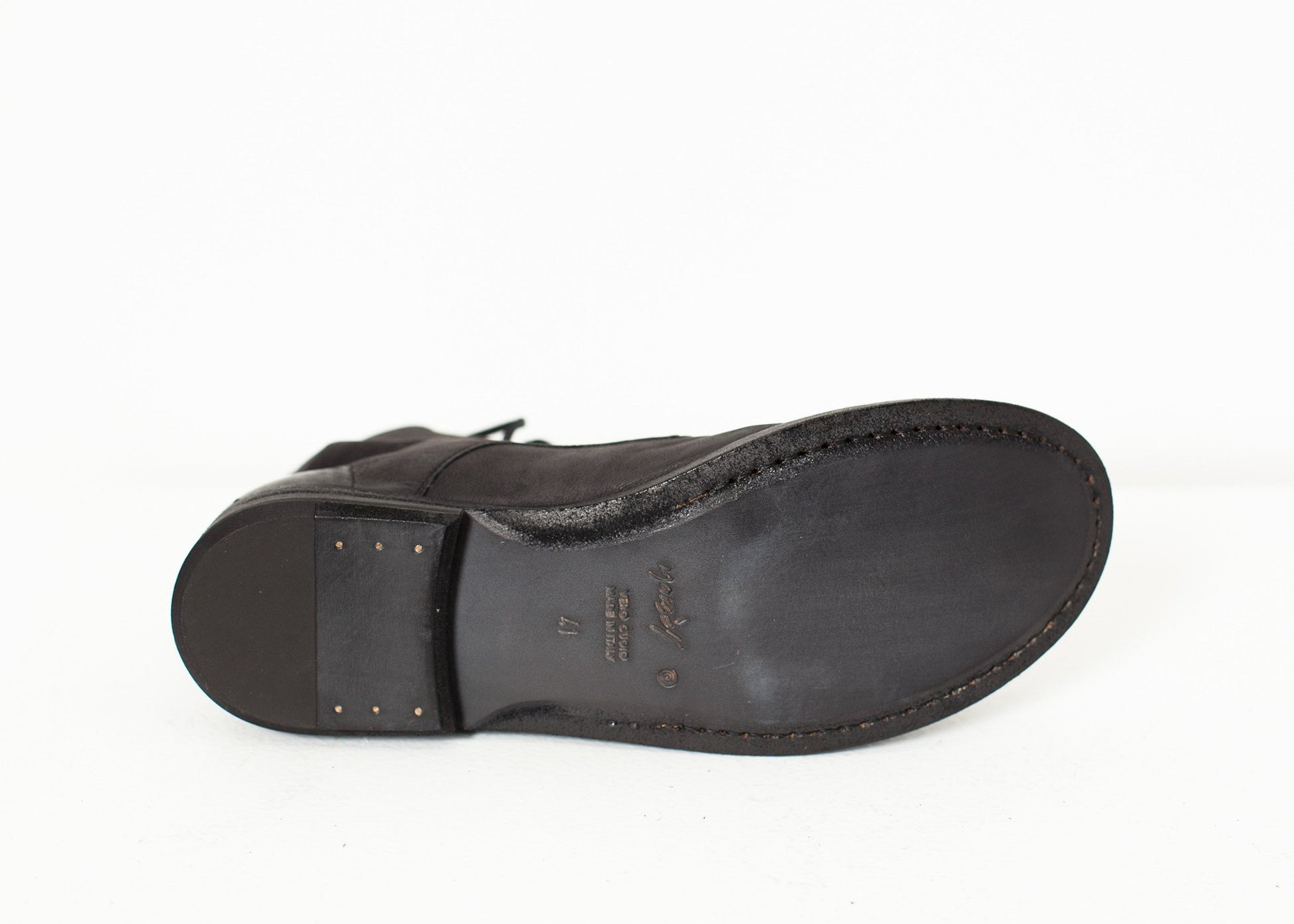 Married aesthetics of innovation and tradition, Marséll crafts shoes of mastering technique. Where modern classism takes wearable shape, anticipate artistic expression epitomized in leather footwear. The Ankle Combat Boot are designed for the "to-go" lifestyle. Comfortable, minimal, yet functional. Color Black. 100% Leather. Made in Italy.